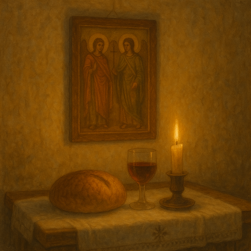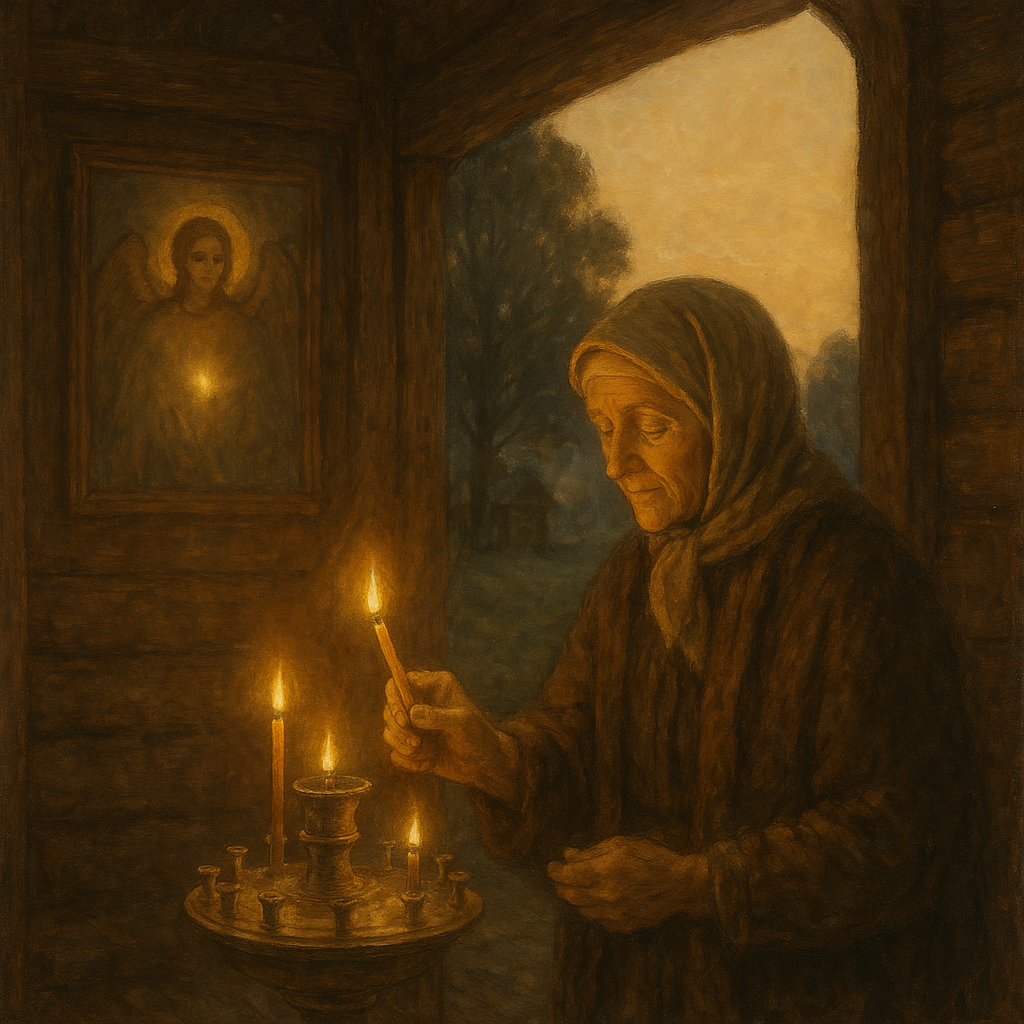„Cu o zi înainte, femeile spălau geamurile, puneau ștergarele albe pe icoane și coceau pâine caldă. În colțul cel bun, la icoana cu Arhanghelul Mihail, se aprindea candela – și ardea toată noaptea, ca o veghe tainică a îngerilor. Iar bărbații se salutau prin sat cu «Să fie primit!», și nu se certa nimeni… că se zicea că în ziua aceea, îngerii se uită la oameni și scriu în cer numele celor blânzi.”