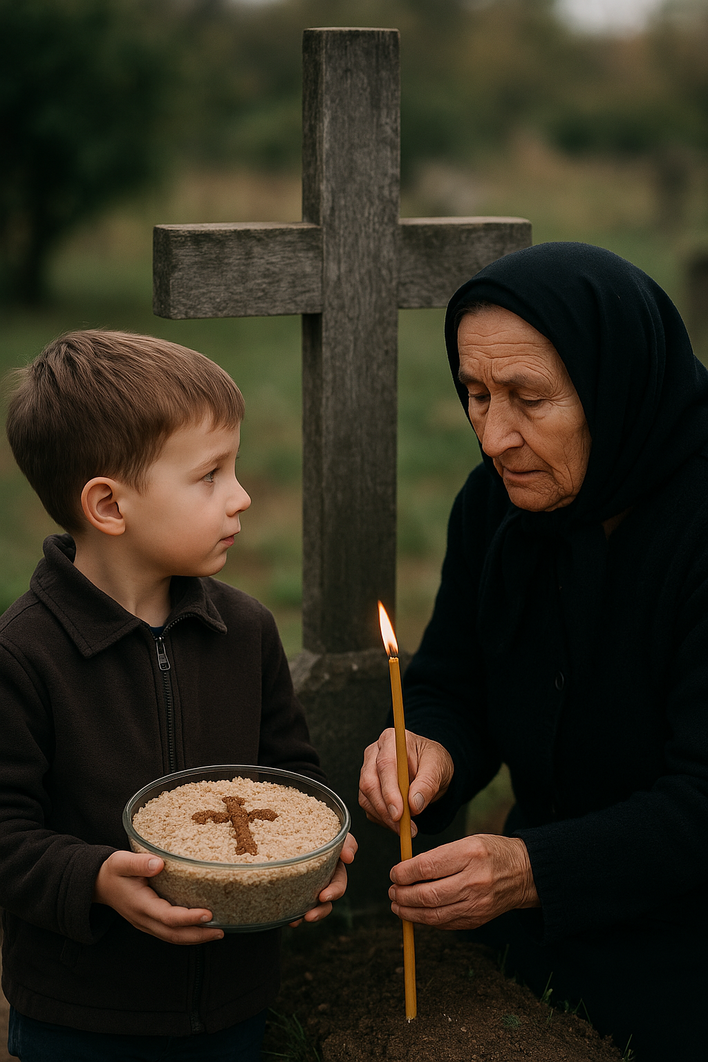 Fiecare aducea ceva: colivă, colaci, vin și o rugăciune.